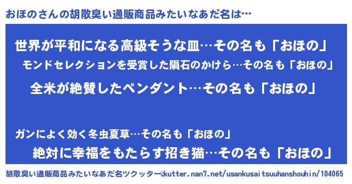| 意味不明あだ名 | 『とにかく怪しいおほの』『自称おほの』 |