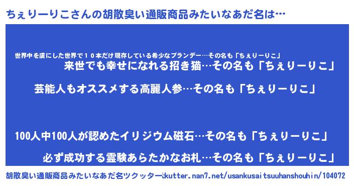 | 意味不明あだ名 | 『自称ちぇりーりこ』 |