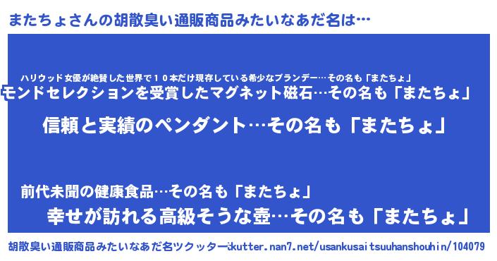 | 意味不明あだ名 | 『めかぶ科またちょ属』 |