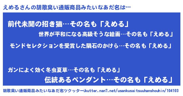 | ヘコむあだ名 | 『えめる(遠い目)』『えめっぺ』 |