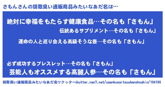 | 意味不明あだ名 | 『さもんフォーエバー』『永久保存さもん』 |