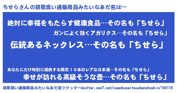 | ヘコむあだ名 | 『ちせっ子』『ちせら(爆)』 |