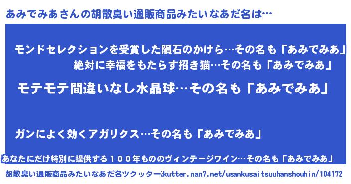 | ヘコむあだ名 | 『あみふぇ~』『あみでみあ(苦笑)』 |