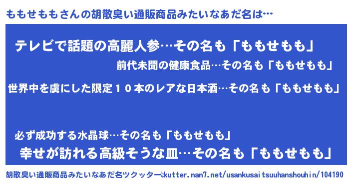 | 男性向けラノベタイトル風あだ名 | 『転生したらももせももだった件』 |