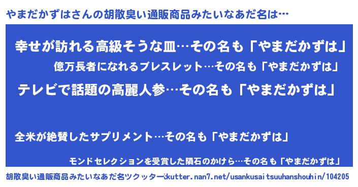 | 意味不明あだ名 | 『自称やまだかずは』 |