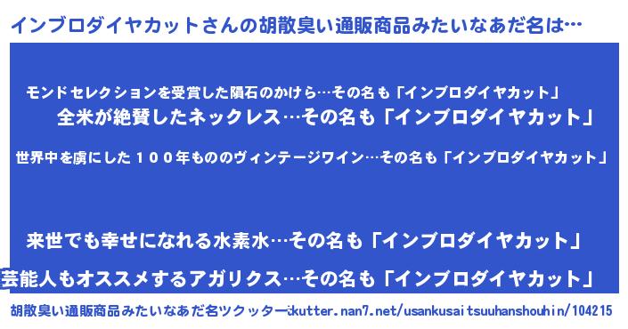 | ヘコむあだ名 | 『インを』『インブロダイヤカット(苦笑)』 |