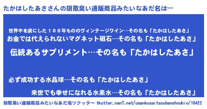| 意味不明あだ名 | 『とにかく怪しいたかはしたあさ』 |