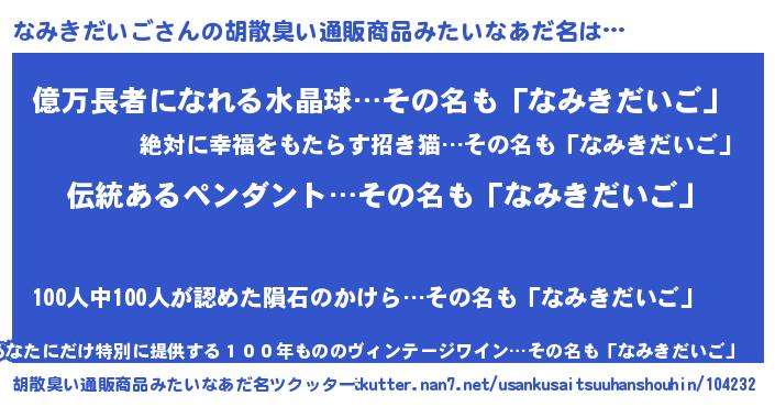 なみきだいごさんの胡散臭い通販商品みたいなあだ名をツクッター!