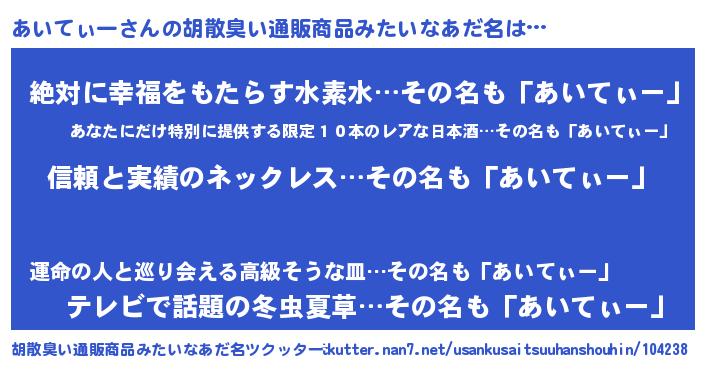 | ヘコむあだ名 | 『あいっぺ』『あいてぃー(震え声)』 |