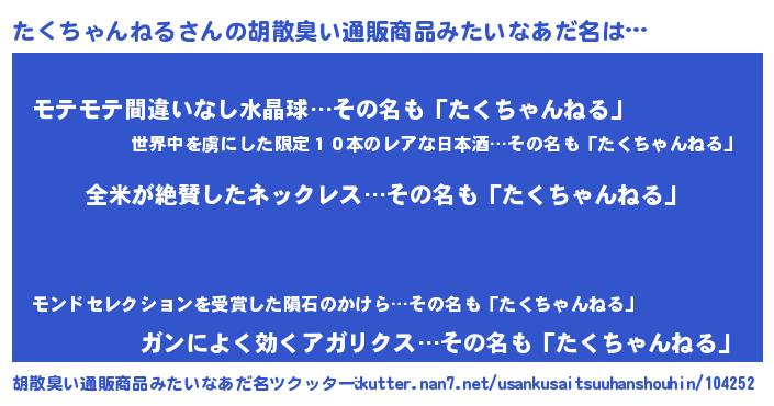 | 意味不明あだ名 | 『とにかく怪しいたくちゃんねる』 |
