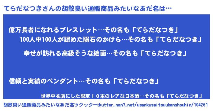 | ヘコむあだ名 | 『つくし』『てらふぇ~』『てらっぺ』 |
