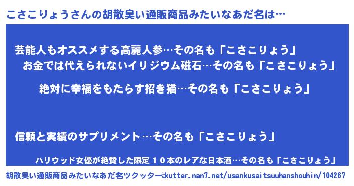 | ヘコむあだ名 | 『こさこりょう(笑)』『こさを』 |