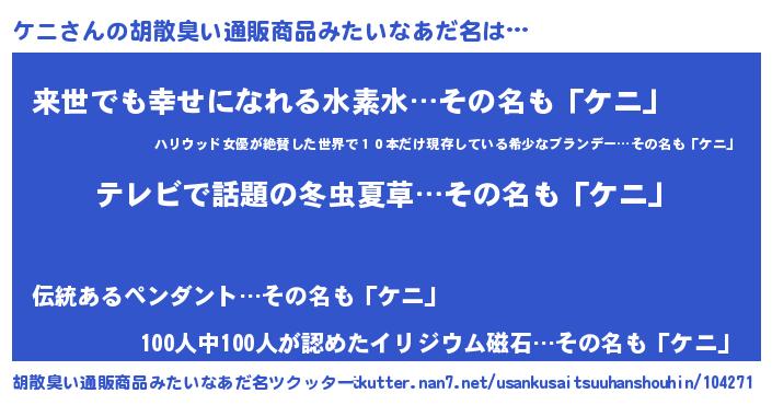 | ヘコむあだ名 | 『ケニ(震え声)』『ケニっ子』『牛乳』 |