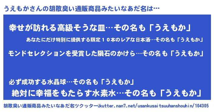 | 欧米人風あだ名 | 『うえもか・ステッグマイヤー』 |