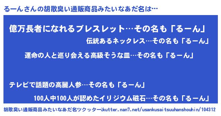| ヒーロー風カッコイイあだ名 | 『ウルトラるーんマン』『スーパールーン』 |