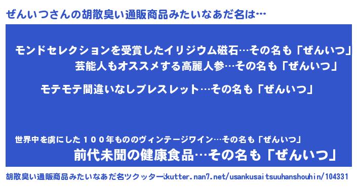 | ヘコむあだ名 | 『ぜんにー』『ぜんいつ(笑)』 |
