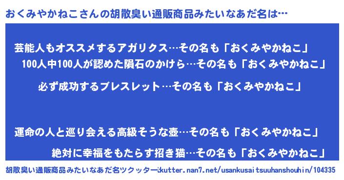 おくみやかねこさんの胡散臭い通販商品みたいなあだ名をツクッター!