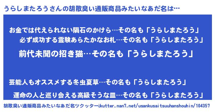 | 意味不明あだ名 | 『永久保存うらしまたろう』 |