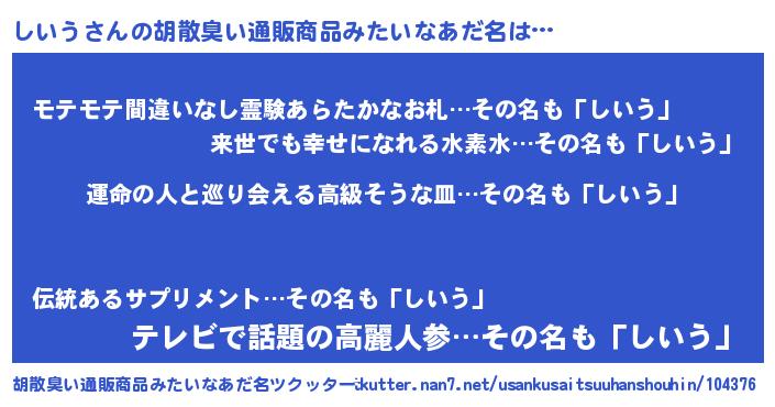| ヒーロー風カッコイイあだ名 | 『ウルトラしいうマン』『スーパーシイウ』 |