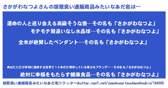| 欧米人風あだ名 | 『アンジェラ・さかがわなつよ』 |