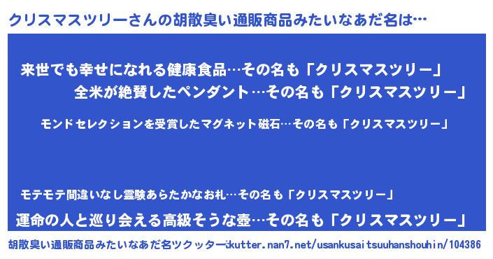 | ヒーロー風カッコイイあだ名 | 『天空の使者クリスマスツリー』 |