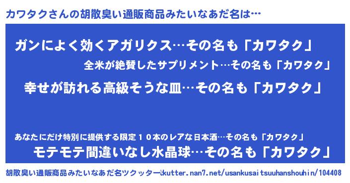 | 欧米人風あだ名 | 『カワタククリステル』 |