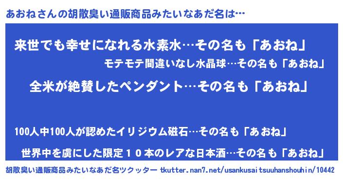 | 意味不明あだ名 | 『とにかく怪しいあおね』 |