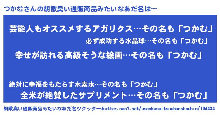 | 意味不明あだ名 | 『つかむフォーエバー』『自称つかむ』 |