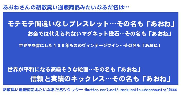 | 欧米人風あだ名 | 『ダレノガレあおね』『マイケルあおね』 |