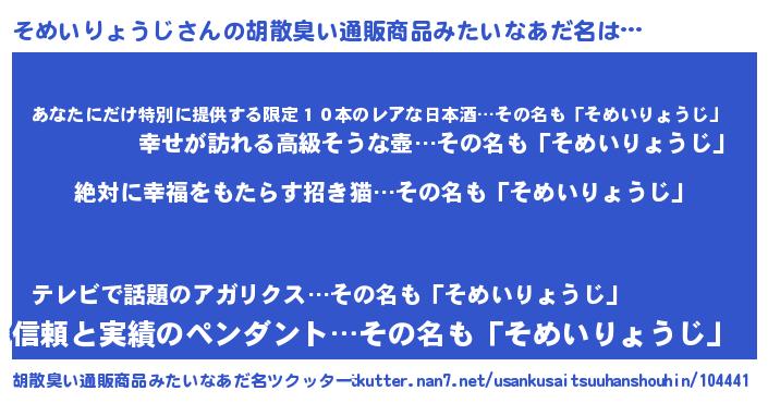 | 意味不明あだ名 | 『永久保存そめいりょうじ』 |