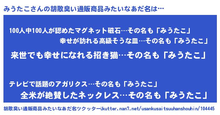 | 意味不明あだ名 | 『永久保存みうたこ』『自称みうたこ』 |