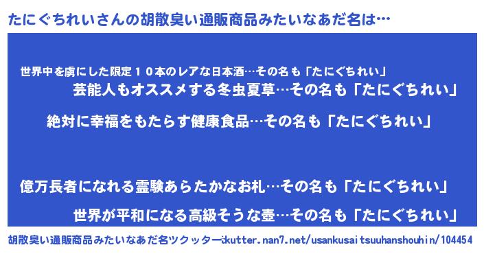 | ヘコむあだ名 | 『たにぐちれい(笑)』『豆乳』 |