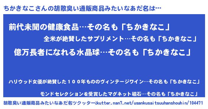 | ヘコむあだ名 | 『ちかにゅー』『ちかきなこ(笑)』 |