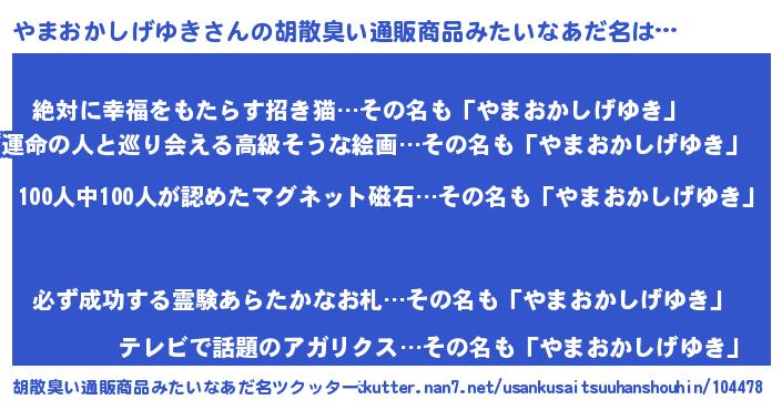 | ヘコむあだ名 | 『やまおかしげゆき(笑)』『つくし』 |