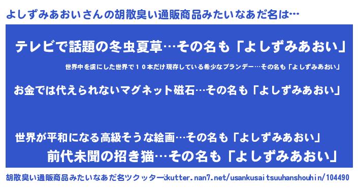 | ヘコむあだ名 | 『よしずみあおい(笑)』『なまこ酢』 |