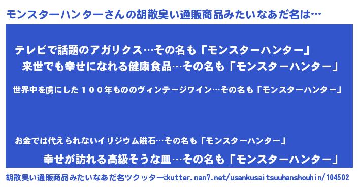 | 欧米人風あだ名 | 『トリンドルモンスターハンター』 |