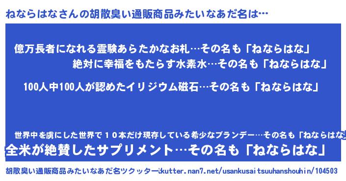 | ヘコむあだ名 | 『ねなもー』『ねなっちょ』『つくし』 |