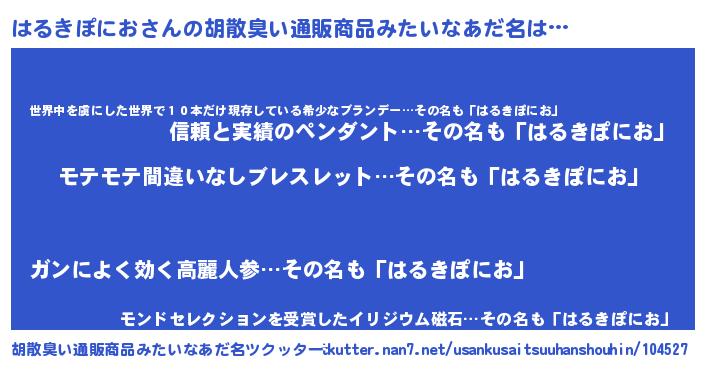 | 意味不明あだ名 | 『ペロリンはるきぽにお』 |