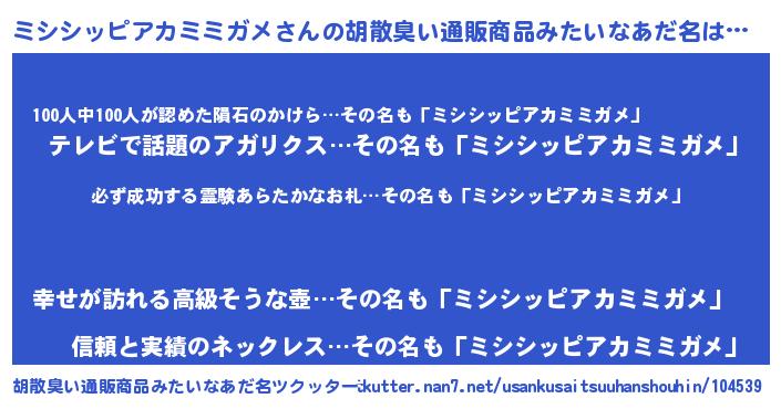 | 欧米人風あだ名 | 『マイケルミシシッピアカミミガメ』 |