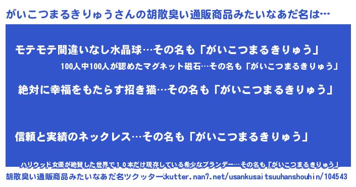 | 意味不明あだ名 | 『永久保存がいこつまるきりゅう』 |