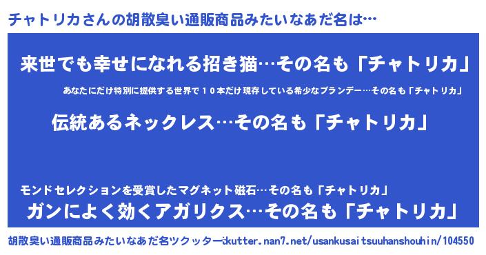 | 意味不明あだ名 | 『とにかく怪しいチャトリカ』 |