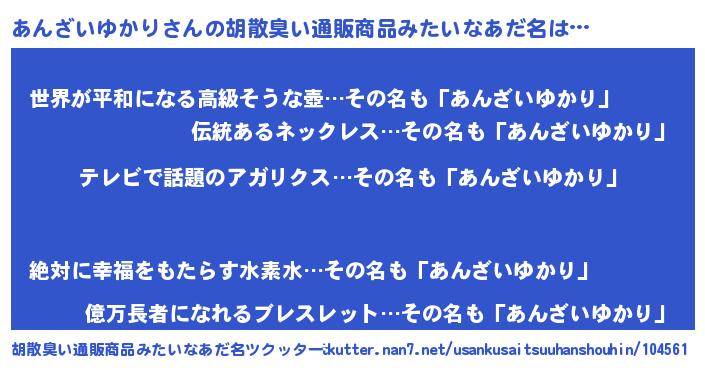| 意味不明あだ名 | 『自称あんざいゆかり』 |