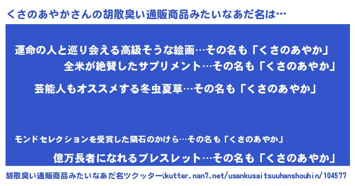 | 意味不明あだ名 | 『自称くさのあやか』 |