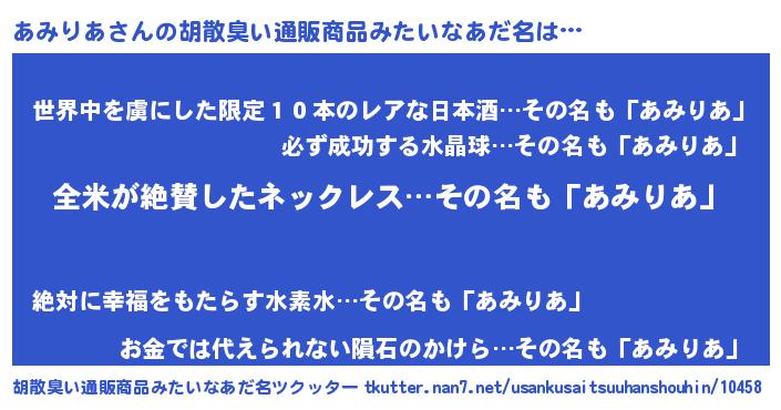 | 意味不明あだ名 | 『とにかく怪しいあみりあ』 |