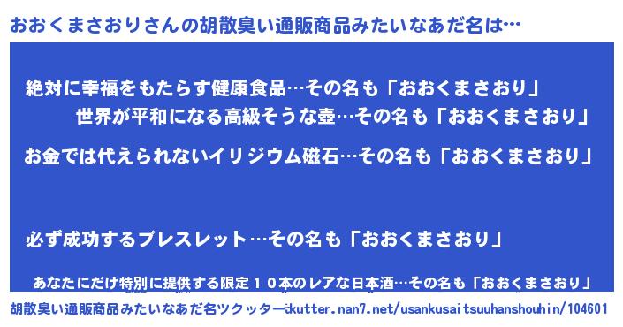 | 意味不明あだ名 | 『眠気覚ましガムおおくまさおり味』 |