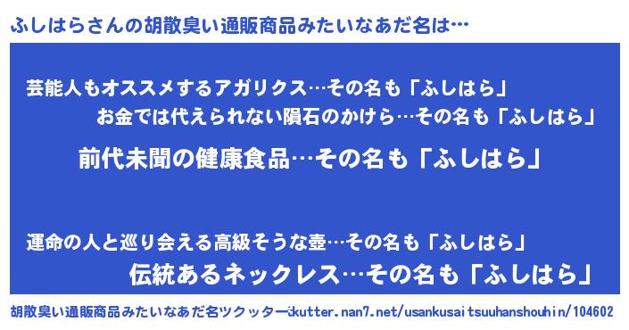 | ヘコむあだ名 | 『ふしはら(爆)』『ふしっぺ』 |