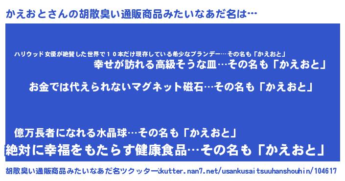 | ヘコむあだ名 | 『かえおと(笑)』『牛乳』『かえお』 |
