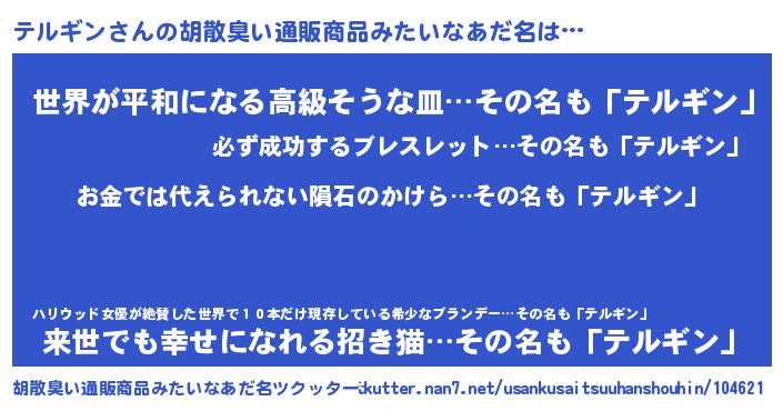 | 欧米人風あだ名 | 『アンジェラ・テルギン』 |