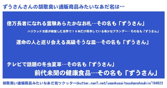 | ヒーロー風カッコイイあだ名 | 『ウルトラずうさんマン』『ネオズウサン』 |