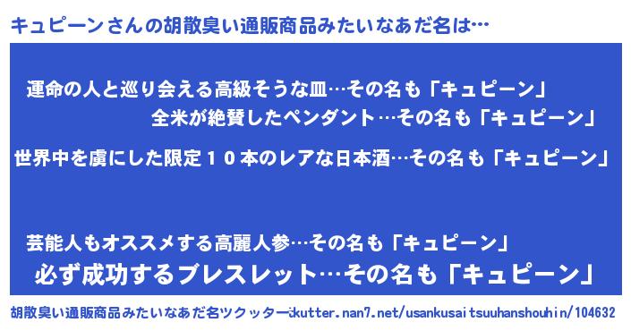 | 恥ずかしいあだ名 | 『キュっちょ』『プリティーキュピーン』 |